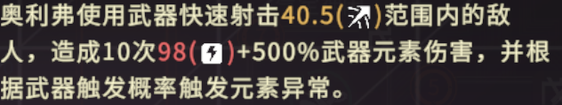 相对准星方向的敌人左右移动并射时,提升10%移速和10%射击伤喜;相对准星方向的敌人倒退并腰射时,提升30%减伤。奥利弗释放二段跳和位移技能可以进行换弹补充50%弹药。