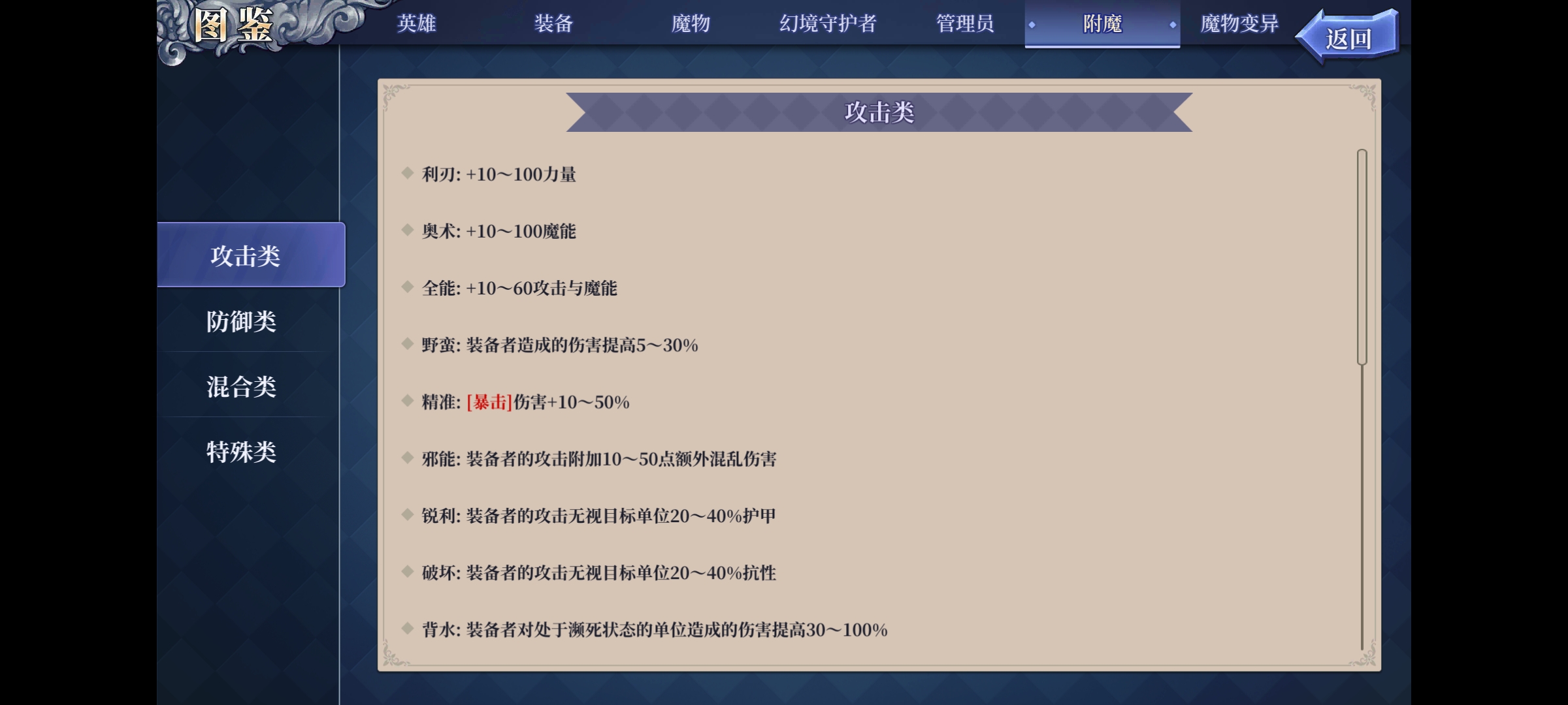 (各种附魔效果可以点击使馆-点击随便一个角色-点击附魔查看)