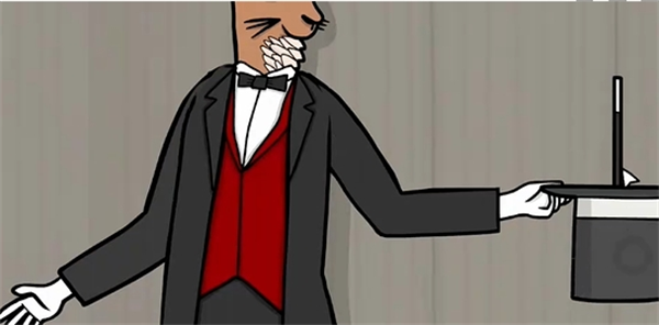 2、然后将帽子中出现的魔术杖放到左边手上。