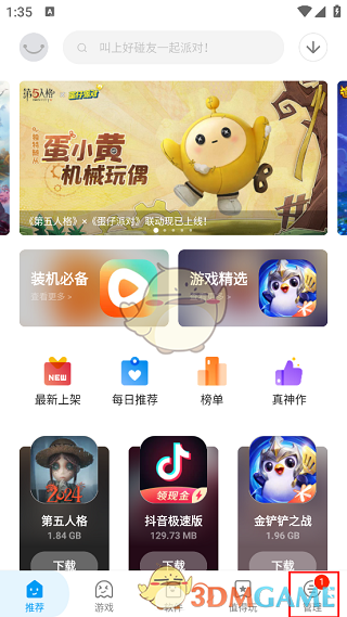 1、打开应用汇主页面,找到并点击右下角的“管理”板块。