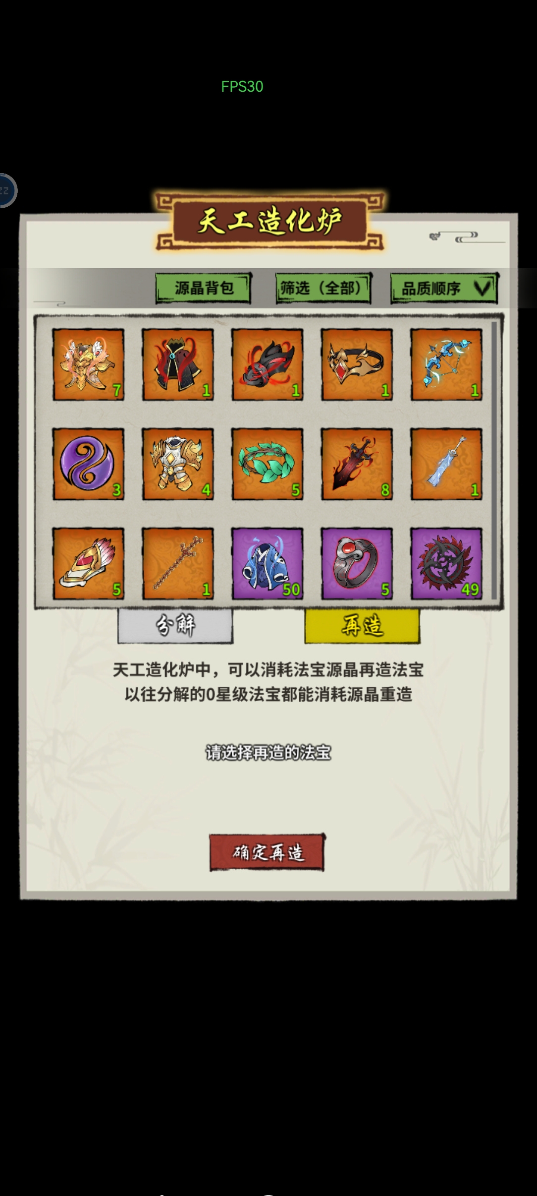 橙色装备分解后可重铸为紫色碎片,避免资源浪费。例如,橙色武器分解后可获得“紫石头”,用于合成其他装备。