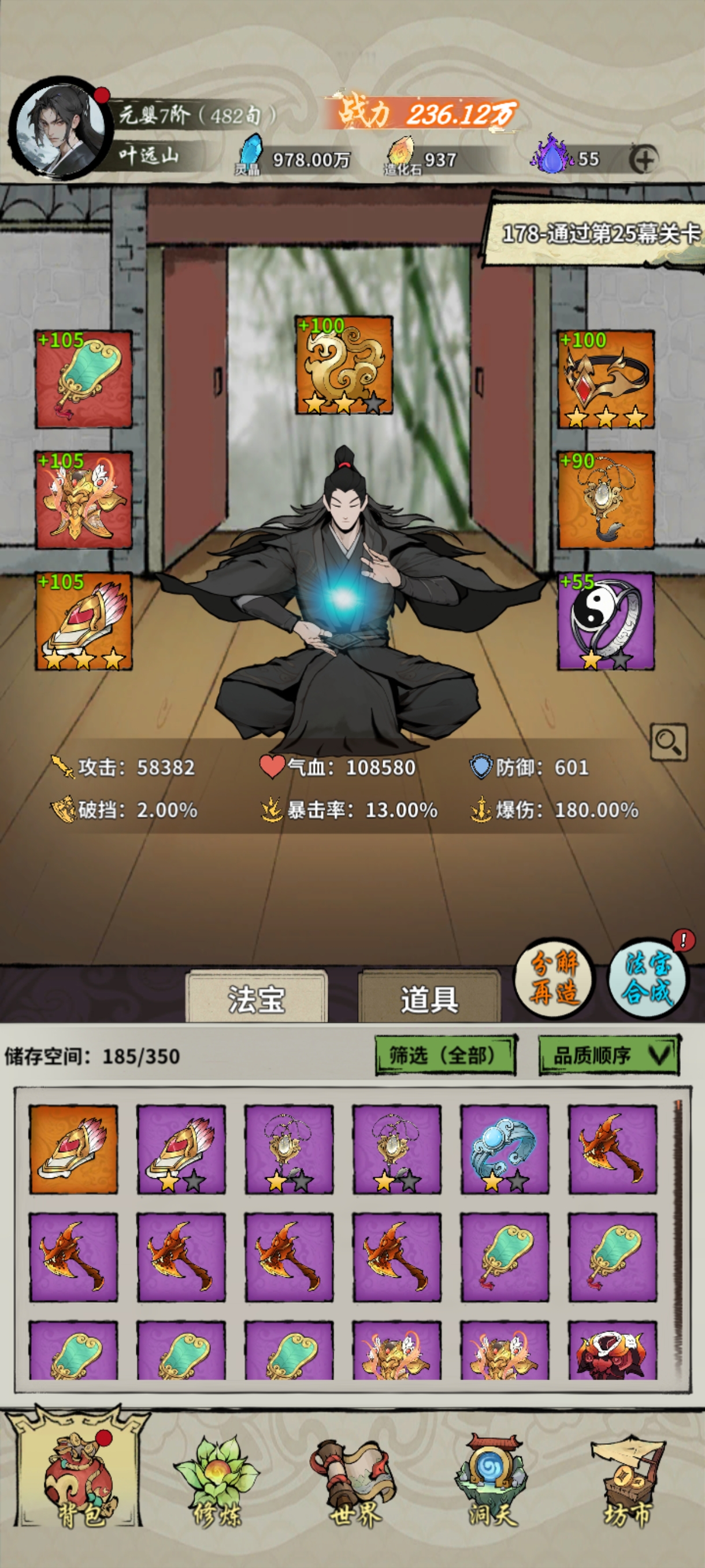 灵力瓶:坊市中必买,升级后存满用于爬塔前爆发(如挑战剑冢或深渊高层)。