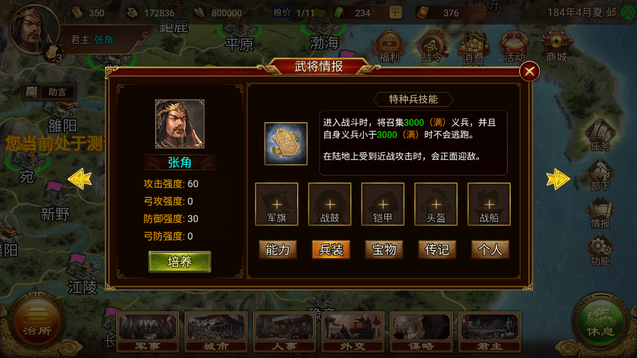 黄巾军在历史上有着“一呼百应”的号召力,在游戏中更是将义兵特色发挥到了极致: