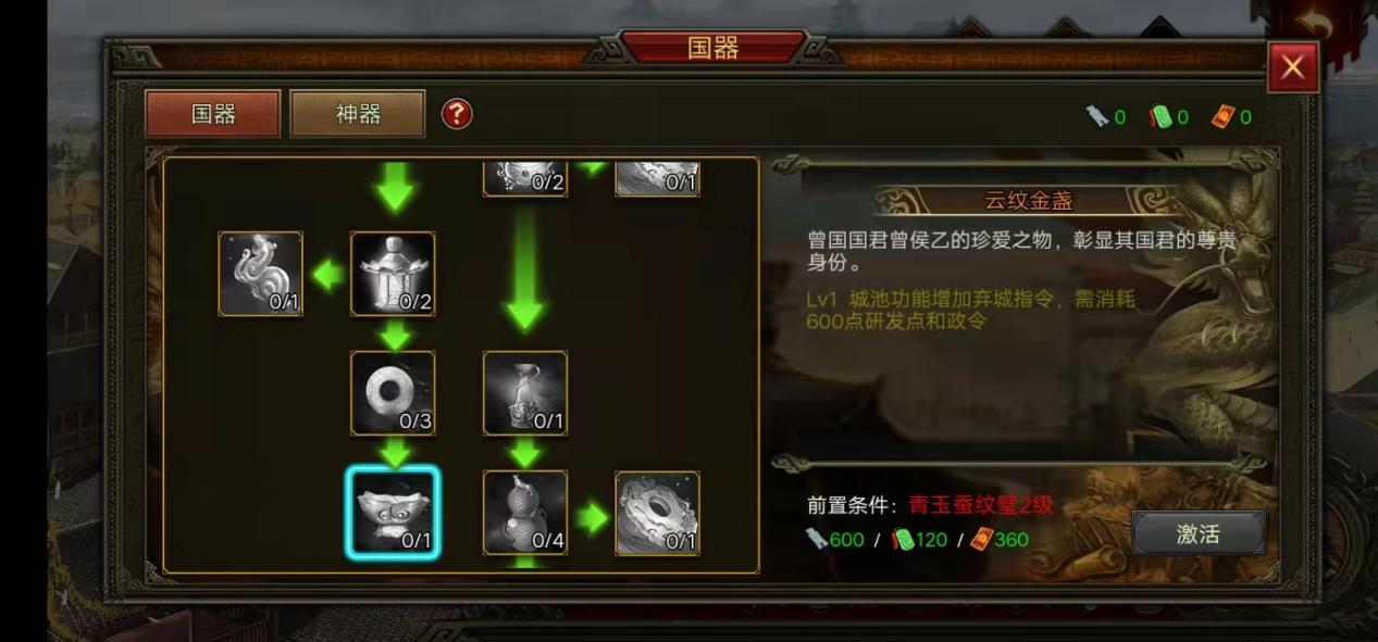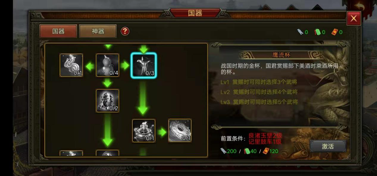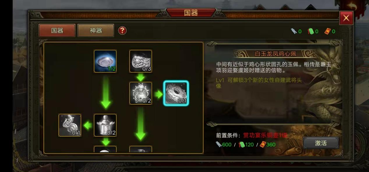 版本中会出现的国器,主要以天赋树的形式来展现,主公需要按照顺序,依次激活哦。