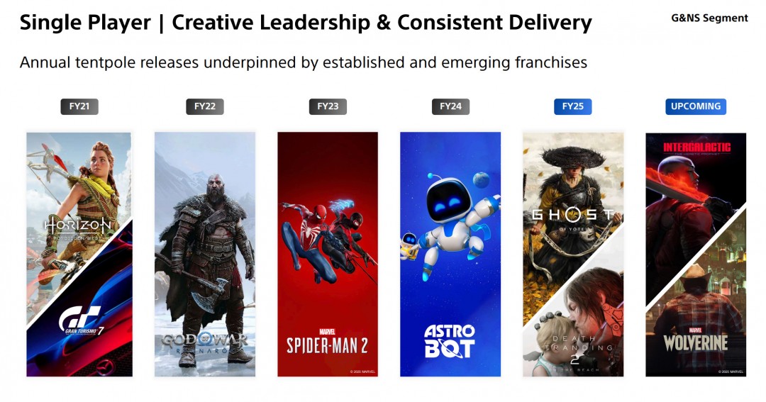 索尼已经确认每年至少推出一部单机大作,今年有Sucker Punch开发的《羊蹄山之魂》,而对于2026年可能有《漫威金刚狼》或者是顽皮狗的《星际:异端先知》。