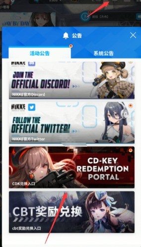 1、进入游戏,点击右上角公告图标,找到CDK兑换入口