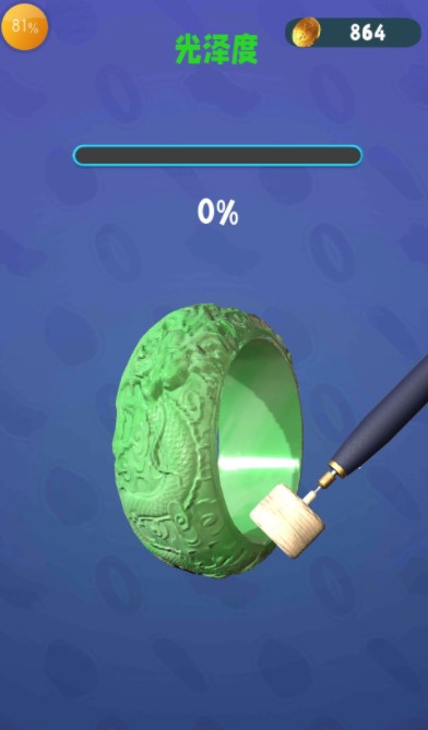 点击切割好的玉石,选择“抛光”的选项,拿起抛光道具划动你的物品,不断点击积累能量槽,能量槽会不断升级,之后就会实现满级,这时就完成。