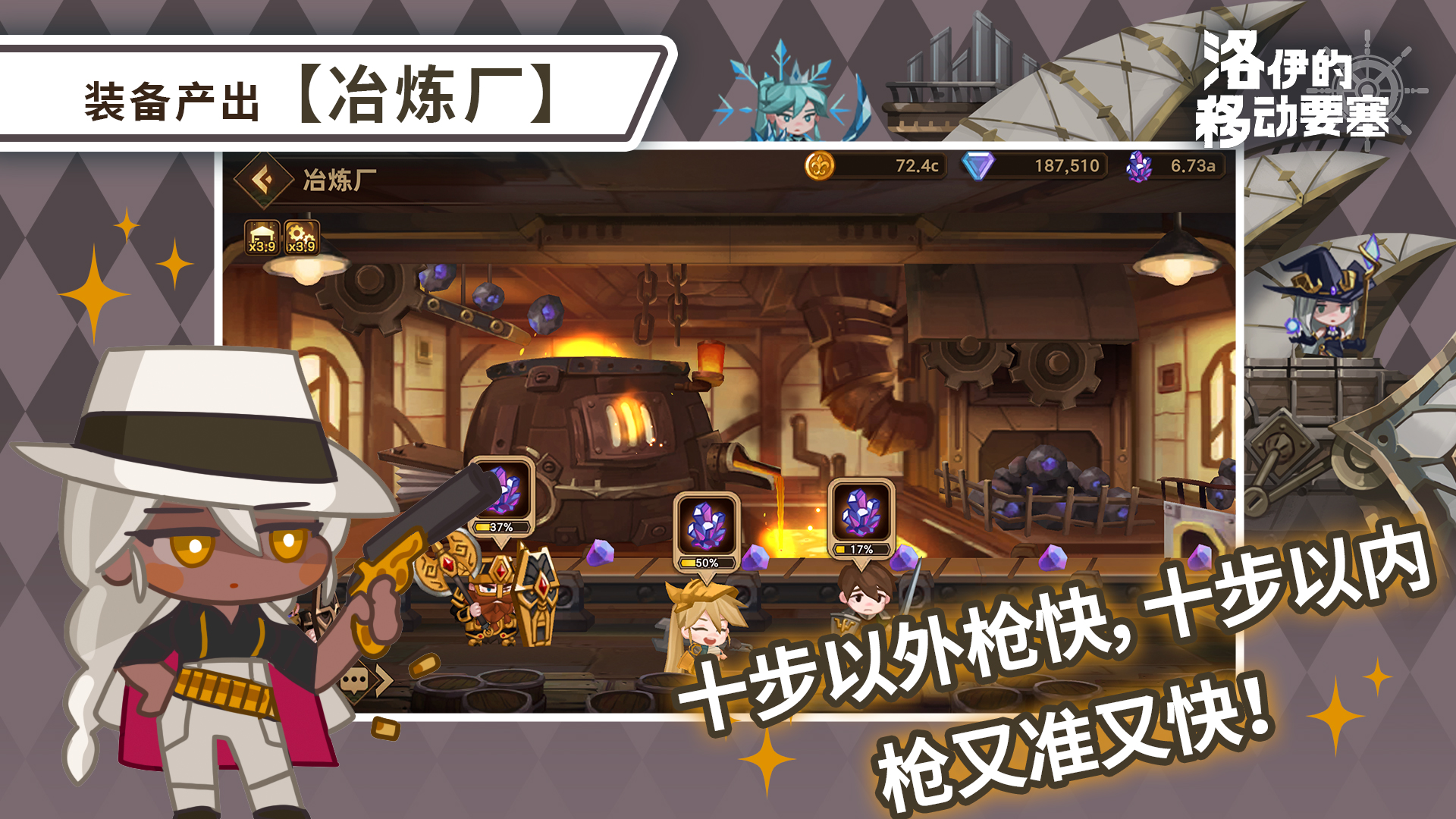 多数英雄的强度依赖专属武器(如紫罗兰的法杖),冶炼厂等级直接影响角色培养上限。