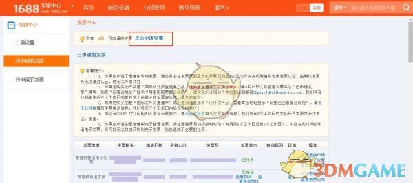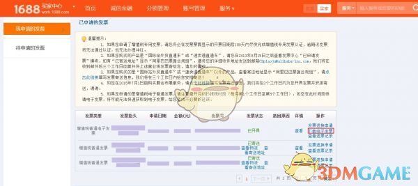 3、如果在该后台没有看到有可以申请的发票,表示目前还没有发票哦,请您核对账号是否登录正确,诚信通是否已经认证开通,或者其他付费业务已经满足了开票条件。