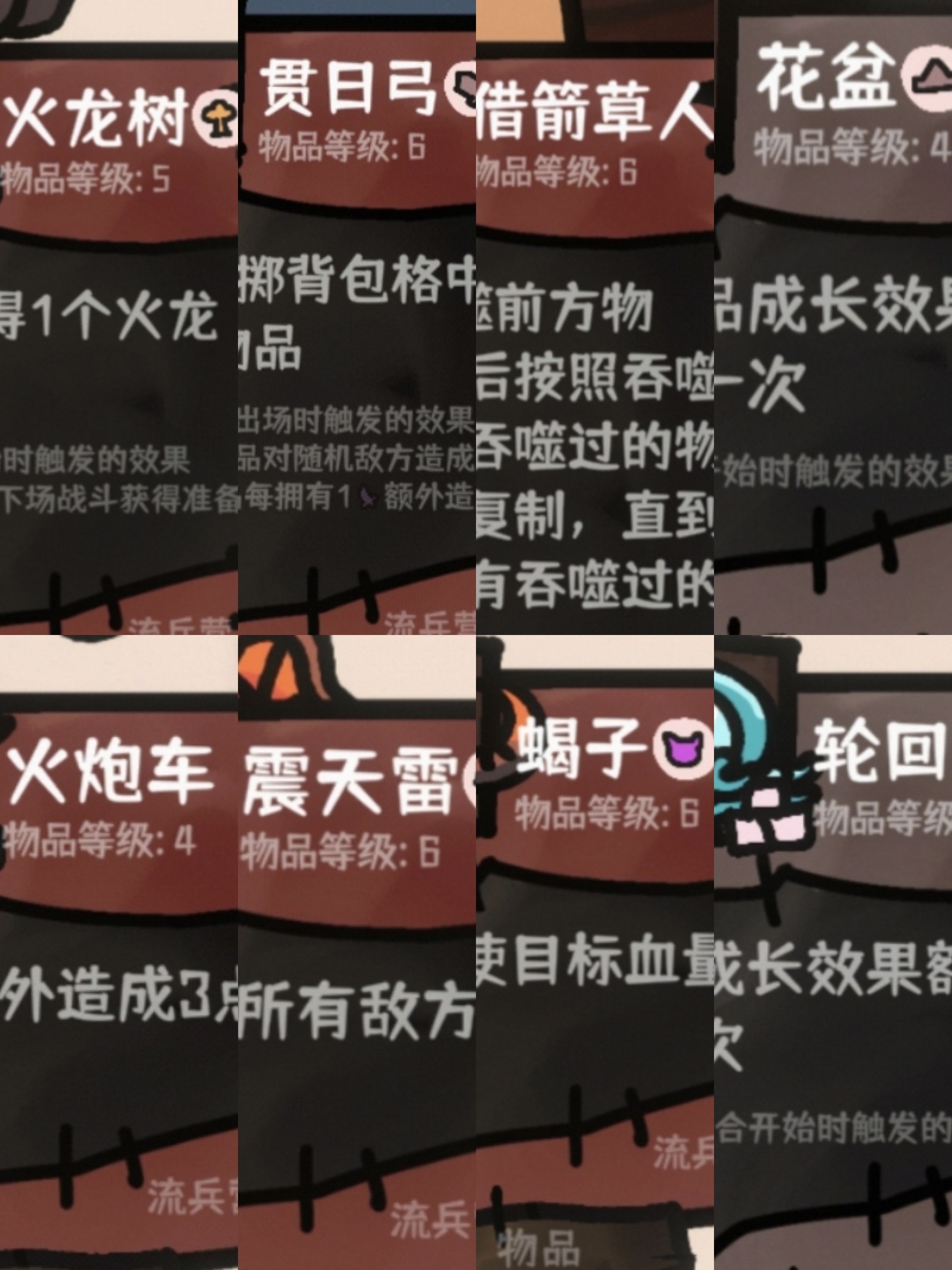5、牛夫人《恶鬼寨》:核心人物:貔貅,前期猪头+多获取任意果树+花盆酒桶过度,56级出凤爪喂貔貅即可