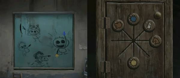 2、根据窗上的线索,打开左侧柜子,获得剪纸小人和锦旗。