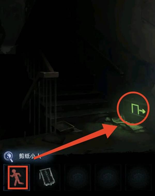 3、去到楼梯,把剪纸小人放到逃生通道图案上,上二楼。