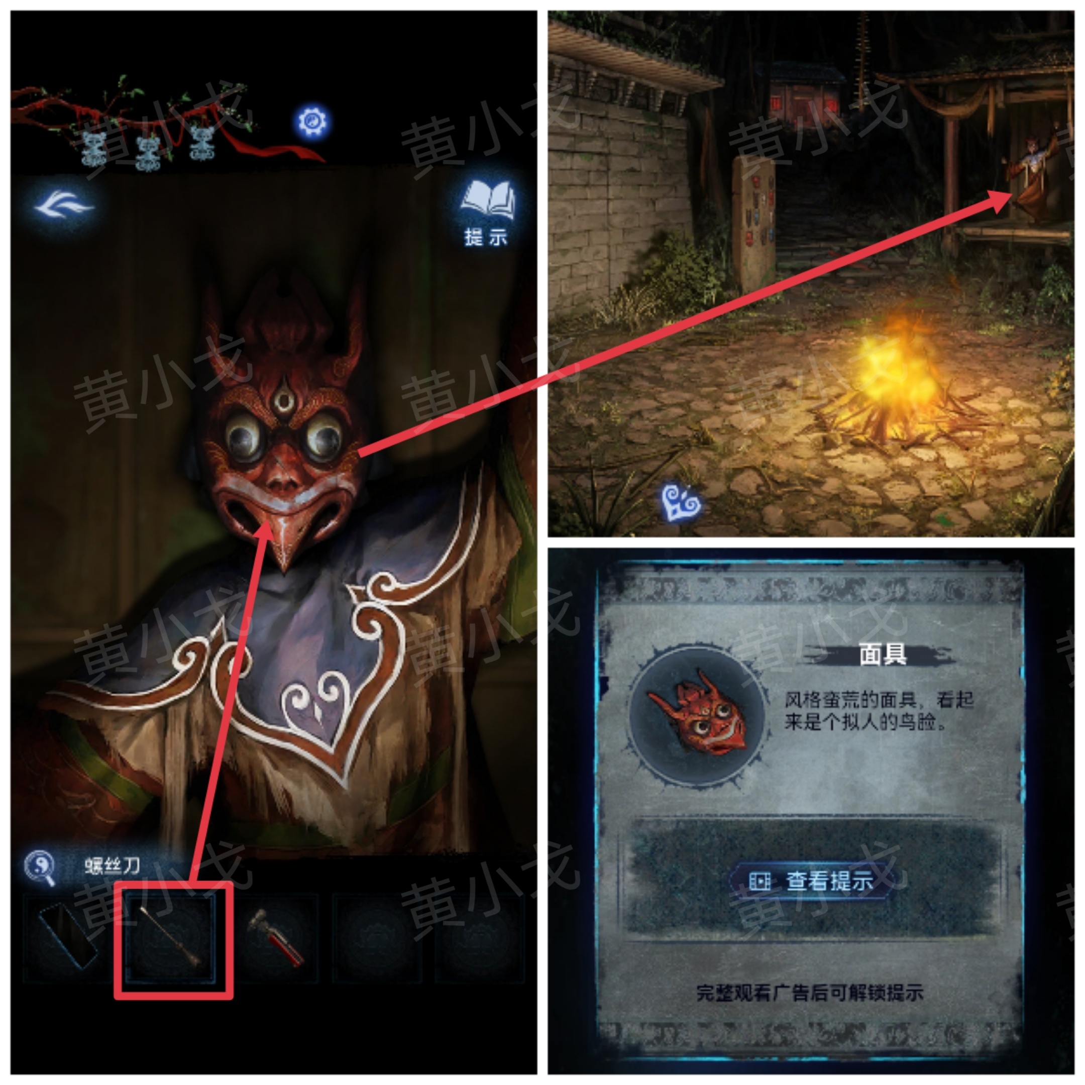 5.点击戏台,用【螺丝刀】把木偶脸上的【面具】抠下来