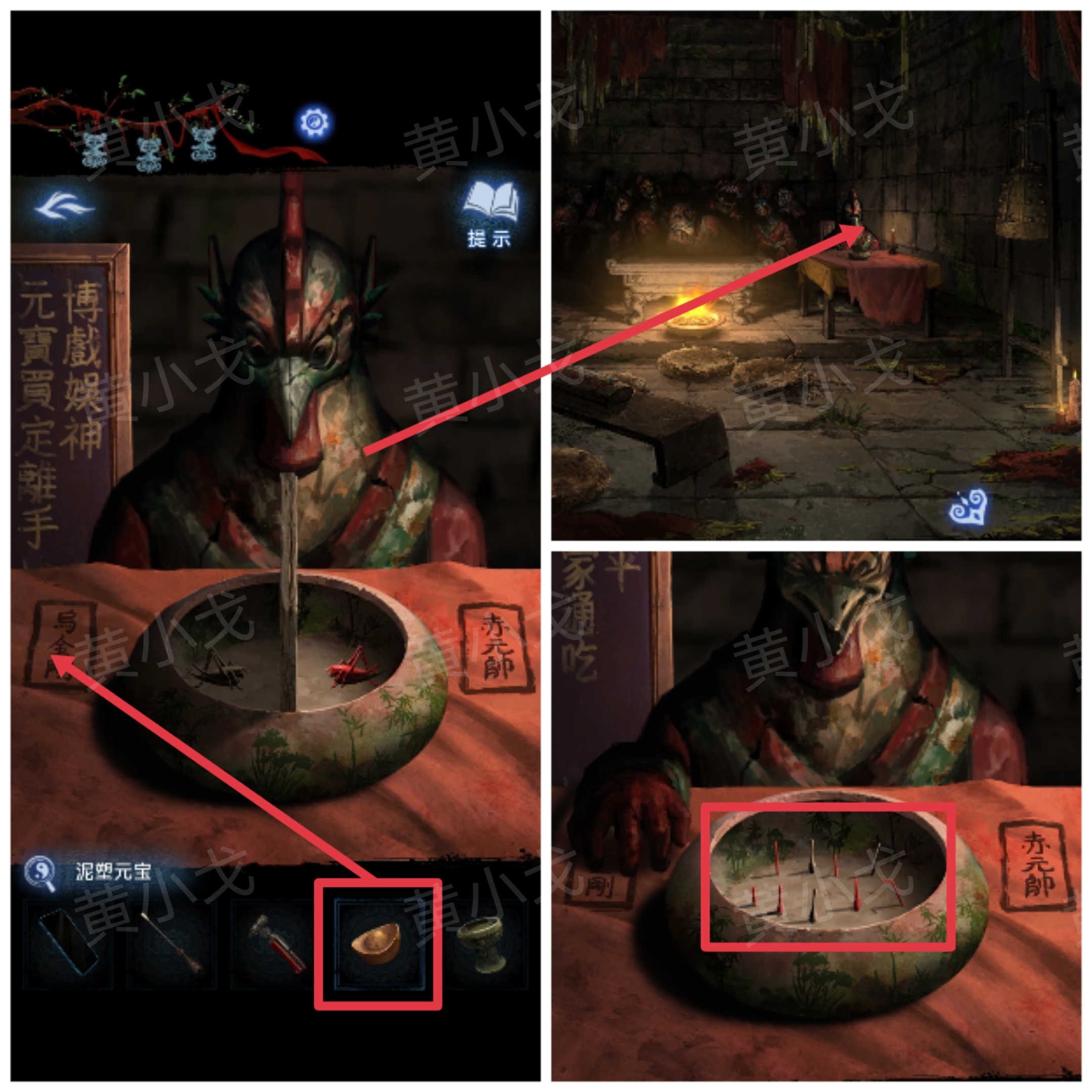 9.点击桌子,押【泥塑元宝】,神像把泥塑蟋蟀都弄死