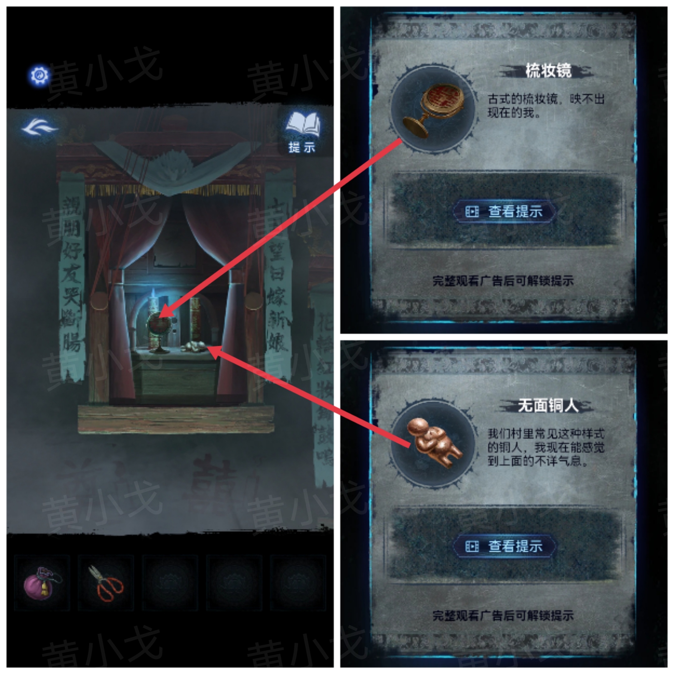 6.拾取花轿里的【梳妆镜】和【无面铜人】