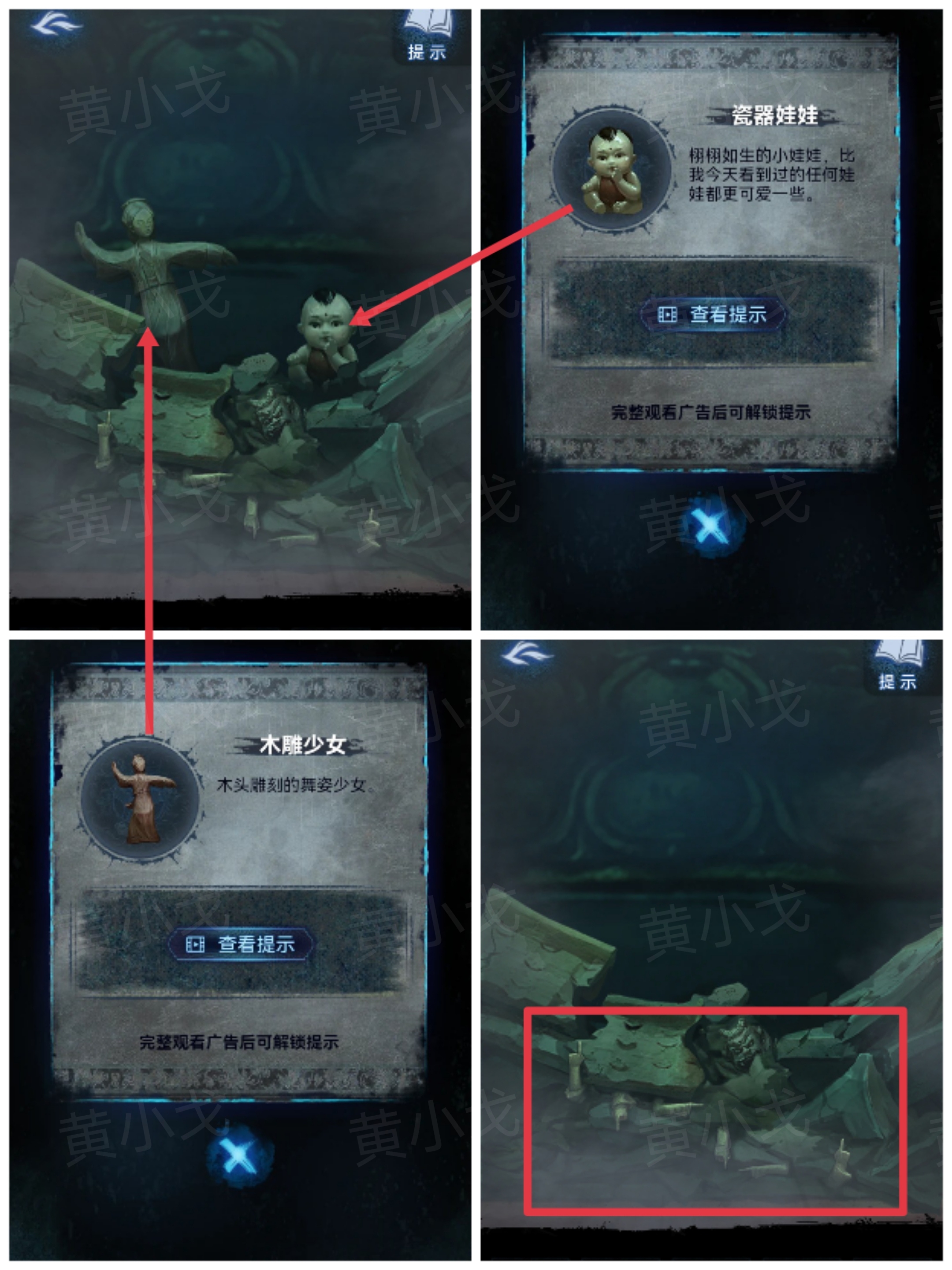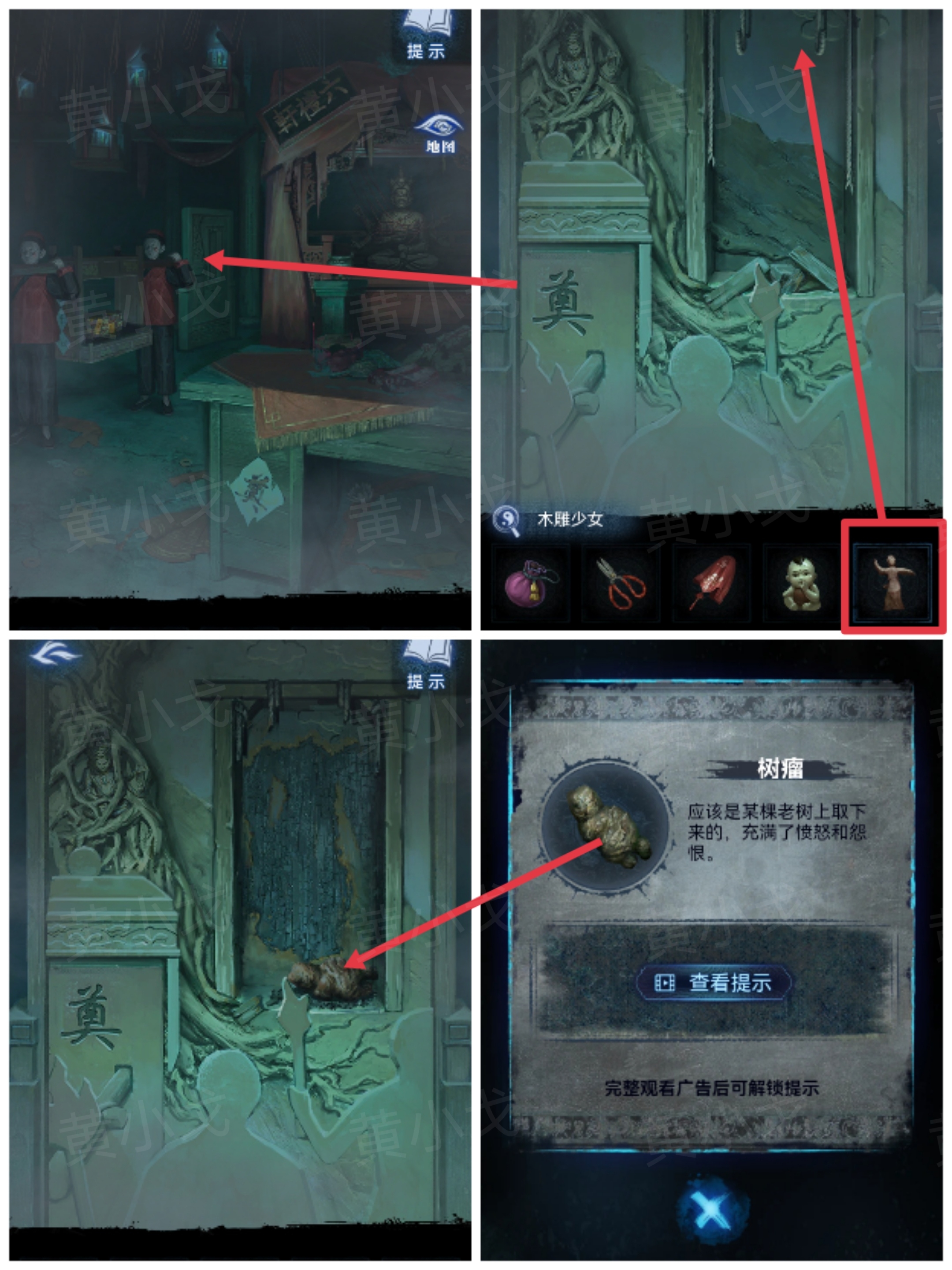 11.点击屏风,放上【木雕少女】,触发剧情,获得【树瘤】