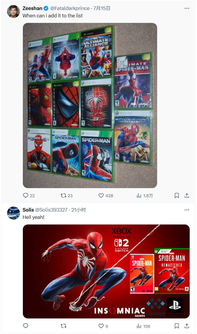 也有老玩家感慨之前的《蜘蛛侠》游戏都是登陆Xbox平台,而且都买了实体版支持,现在什么时候才能再支持一波呢?