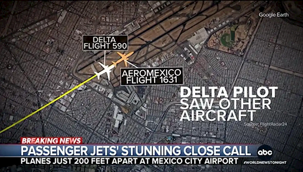 7月24日消息,据报道,7月21日,一架墨西哥航空客机在墨西哥城贝尼托·华雷斯国际机场降落时差点与达美航空客机相撞。