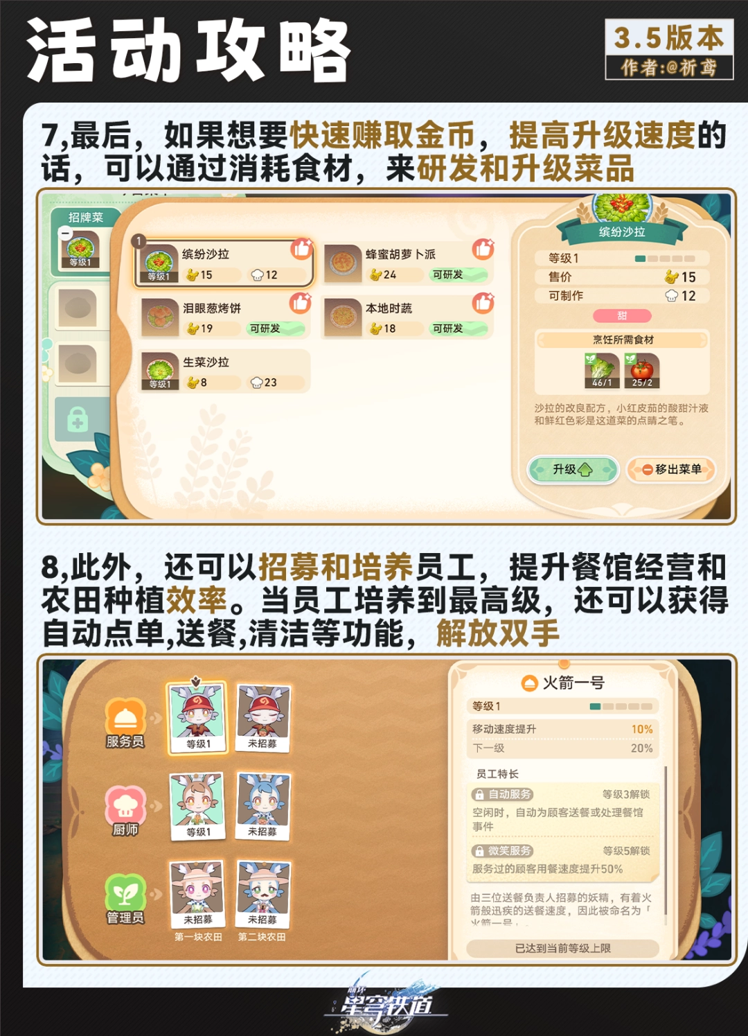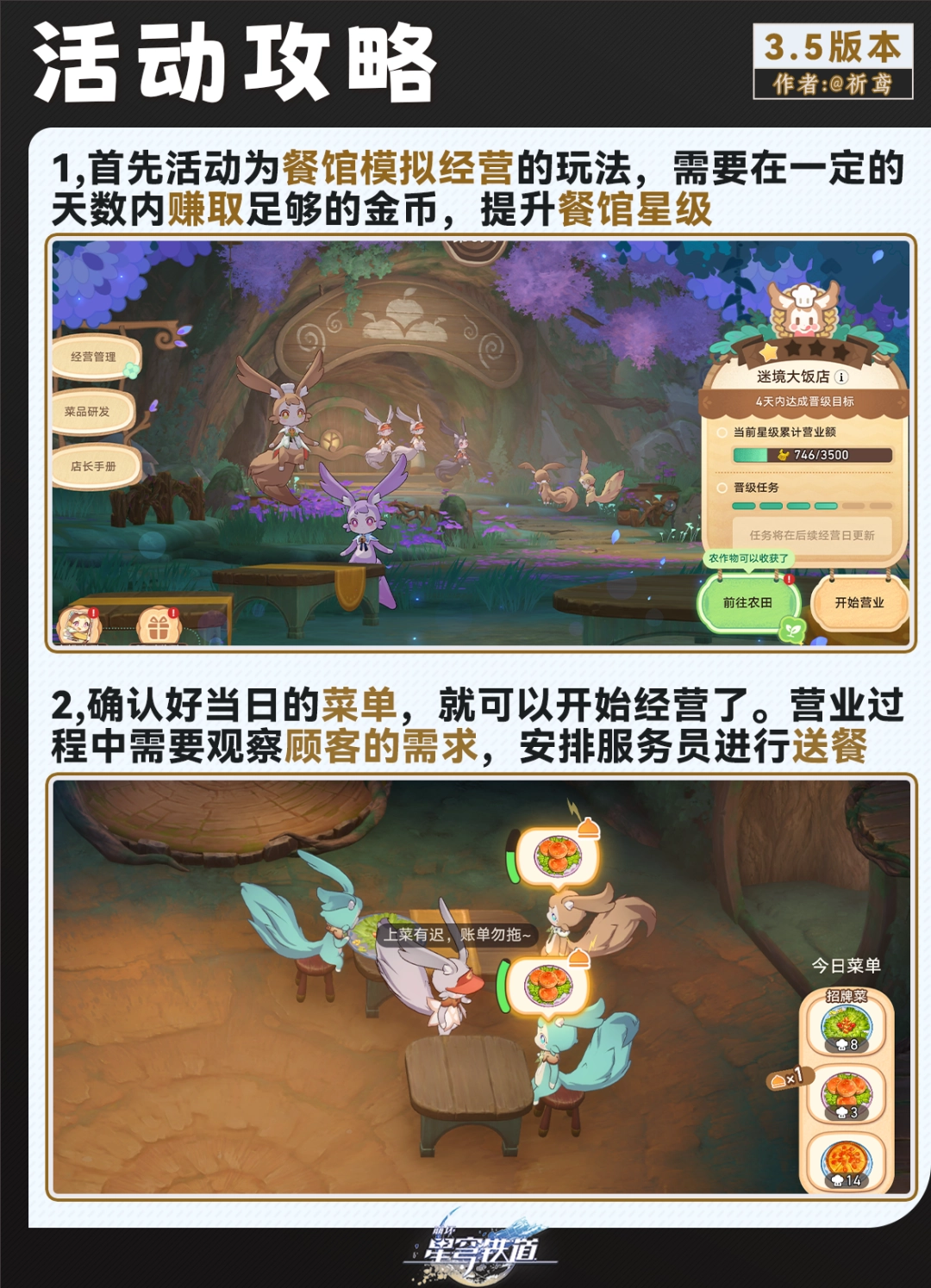 (1)活动是餐馆模拟经营的玩法,总体玩起来比较简单,也没有固定的流程,大家可以按喜欢的方式游玩
