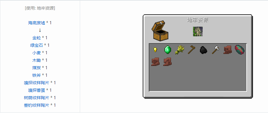 弓箭、采矿、珍宝或头颅纹样陶片有1/8的概率在沙漠神殿生成的可疑的沙子中得到;