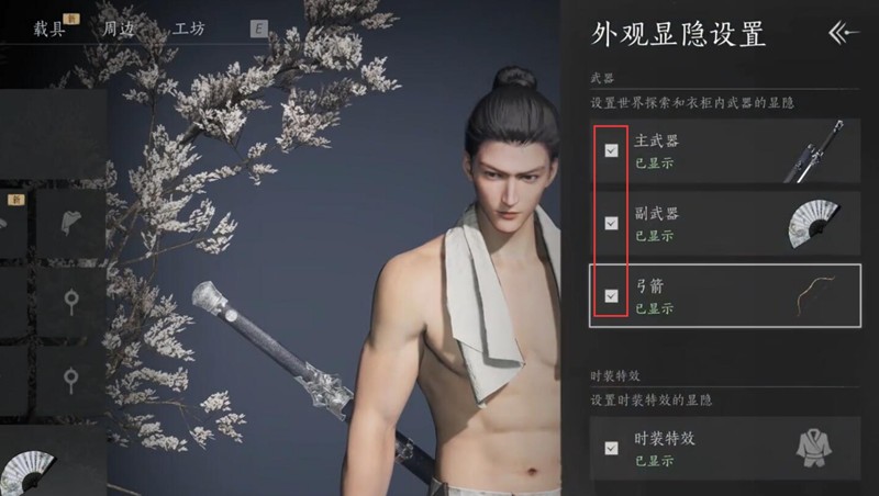 在外观界面中,左下角会有一个“外观显隐设置”的按钮,点击进入后可以看到关于武器显示的设置项。玩家可以取消勾选想要隐藏的武器,从而实现外观上的隐藏效果。整个过程只需几步即可完成,非常适合喜欢个性化装扮的玩家。