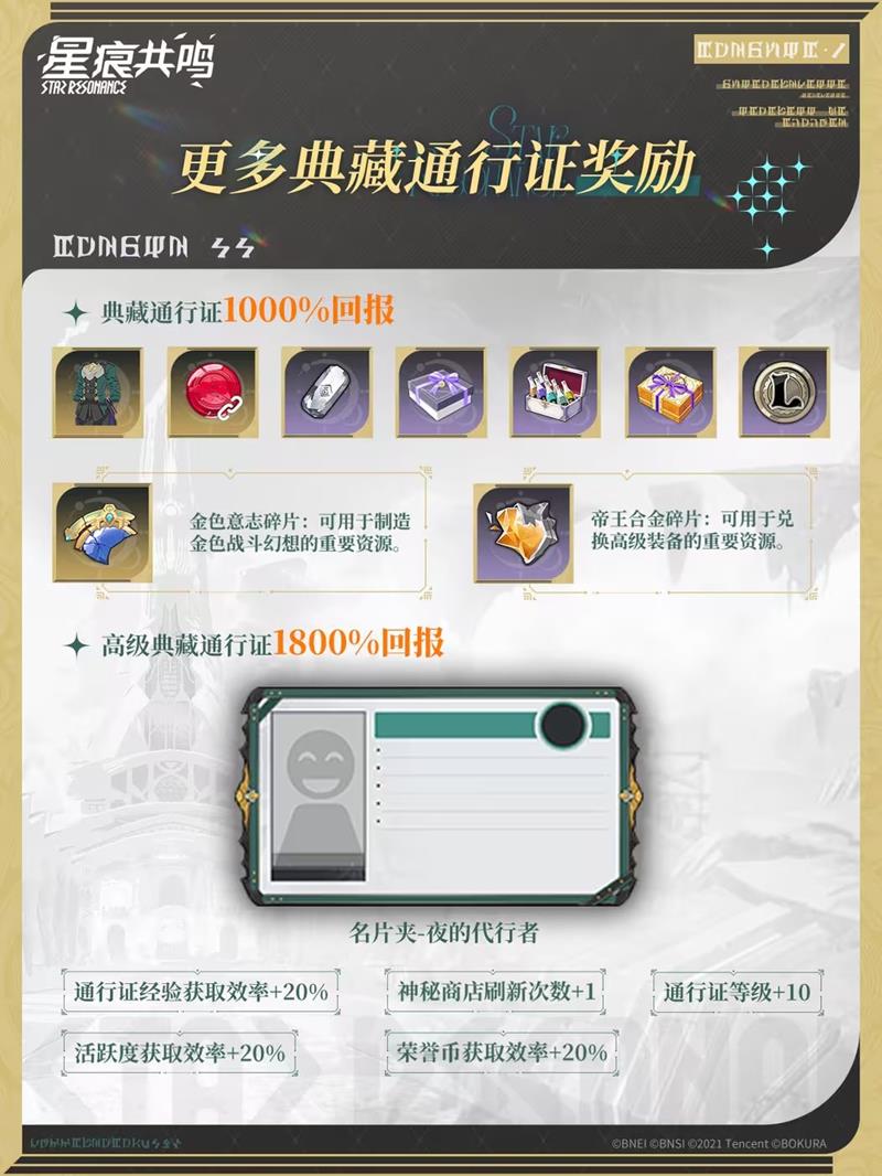 随着通行证的更新,玩家们可以期待更多的典藏通行证奖励。典藏通行证提供1000%的回报,包括金色意志碎片和帝王合金碎片等重要资源,这些资源对于制造金色战斗幻想和兑换高级装备至关重要。