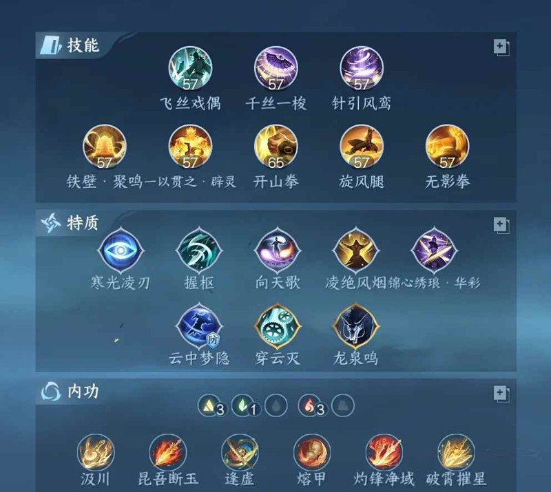 核心内功:坠虚烬/破霄/昆吾