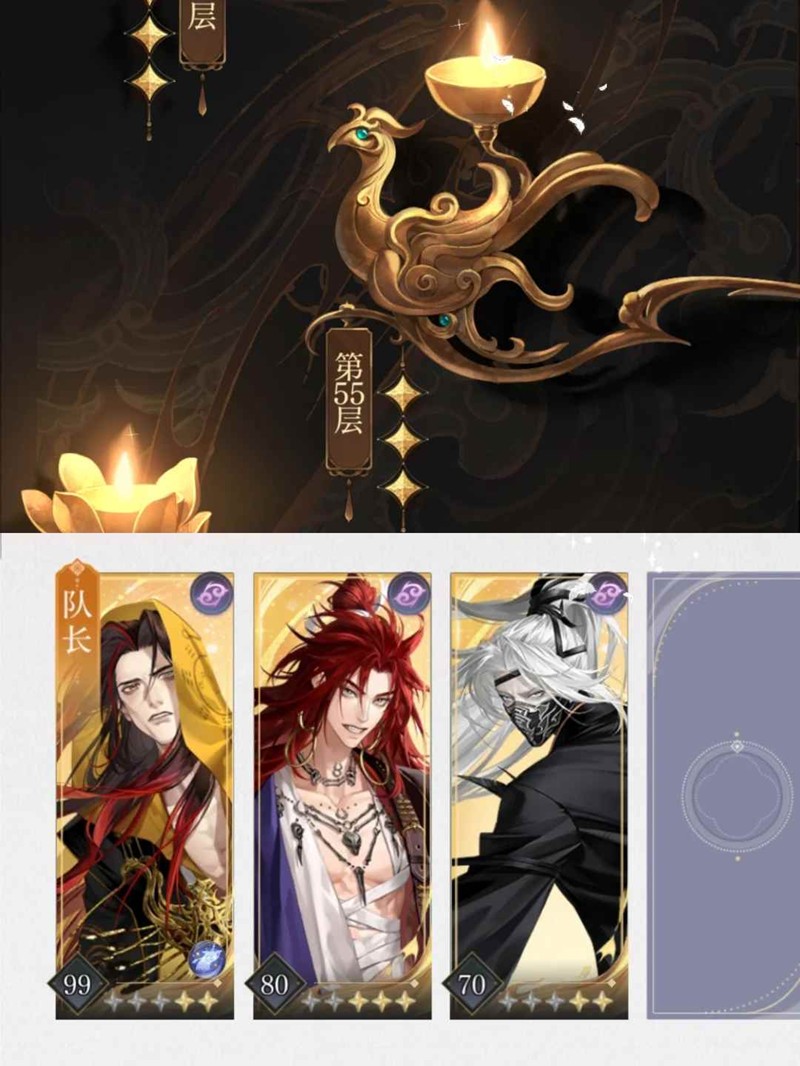 56之前的小怪关:ee/角叔+陈登(必须在不然启动难)+有加成的角色