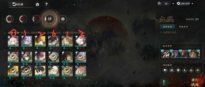 自动打的话两个试炼五我这是过不去的,不过把四打过就能全拿灰珀了,可以在开自动前调一下站位,个人感觉影响不大,大家看自己需要吧