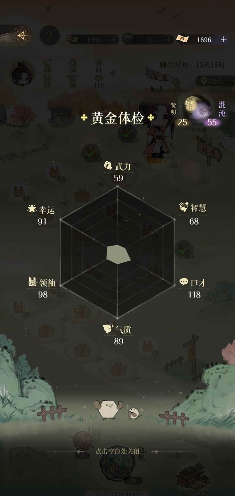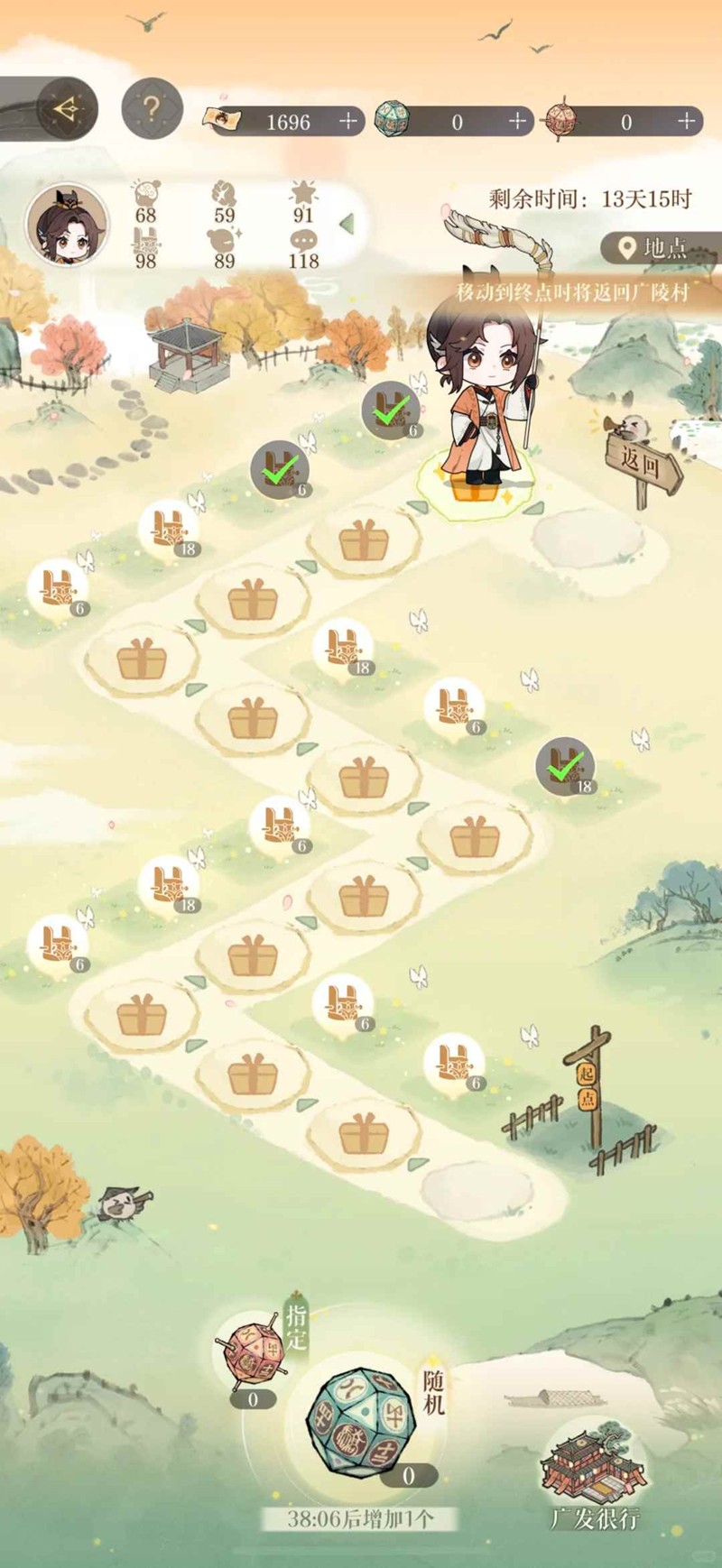 三、个人建议进属性地图后先走一步看能不能摇到6 摇到能加18点属性 不管摇没摇到 第二步都可以指定一下+18点属性的位置 我有一次摇到5-6-3 一趟下来只拿到12属性 等于800的船票和3个步数只有12属性 很亏 不如直接买凉茶