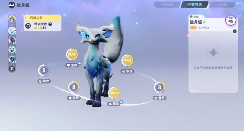 胧月狐是开局另一个可选宠物,拥有较高的基础属性值。当玩家达到18级并完成朝花村任务后,胧月狐将迎来进化。进化后的大招光属性攻击在前期战斗中极具威力,能够有效克制蓬蓬羊、大号鸥等前期boss。