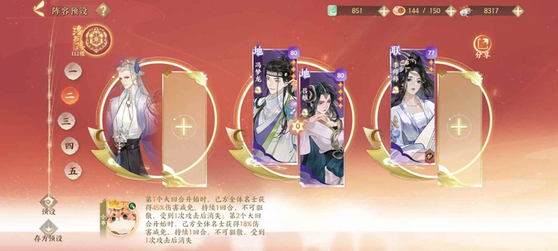 固定队员 :物华0星西施+姑射4星班昭+物华0星邓绥+端华4星婉儿。西施换成团棉应该更好但是我没资源了。