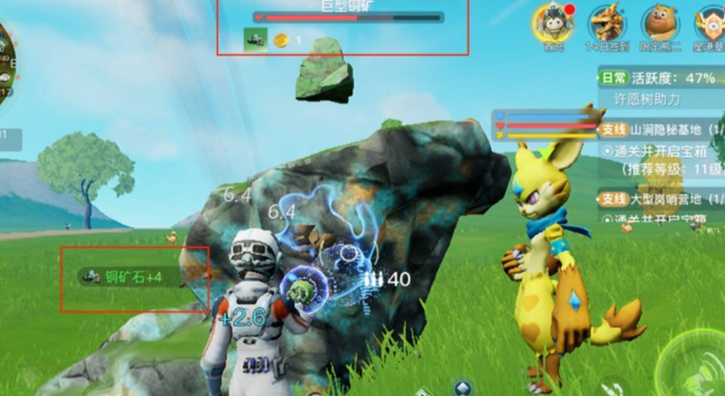 各个地图场景中都栖息着多种宠物,它们既可以成为伙伴也能作为坐骑使用。玩家可以通过星灵魔方收集宠物,也可以选择击败它们获取食材资源。此外所有地图都会分布各种植物和矿物资源,这些都是玩家需要收集的重要材料。