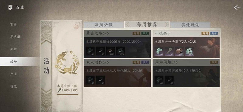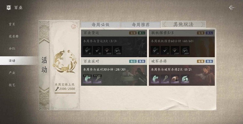 6.获取短陌钱2000(建议前一周结束前在不肝商店换短陌钱箱子,这样下周可以直接快速获得短陌钱,以此循环,快速且不用费时间卖货)