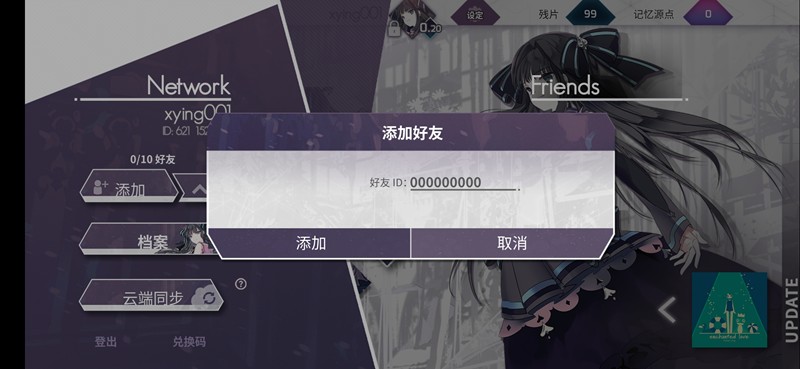 在arcaea游戏中,添加好友的操作位于主界面左侧菜单栏。玩家需要点击网络选项,然后选择添加功能,输入好友的游戏ID即可发送申请。等待对方通过后,就能成功添加好友。需要注意的是,arcaea不支持随机添加陌生人,只能通过准确输入ID来添加认识的朋友。