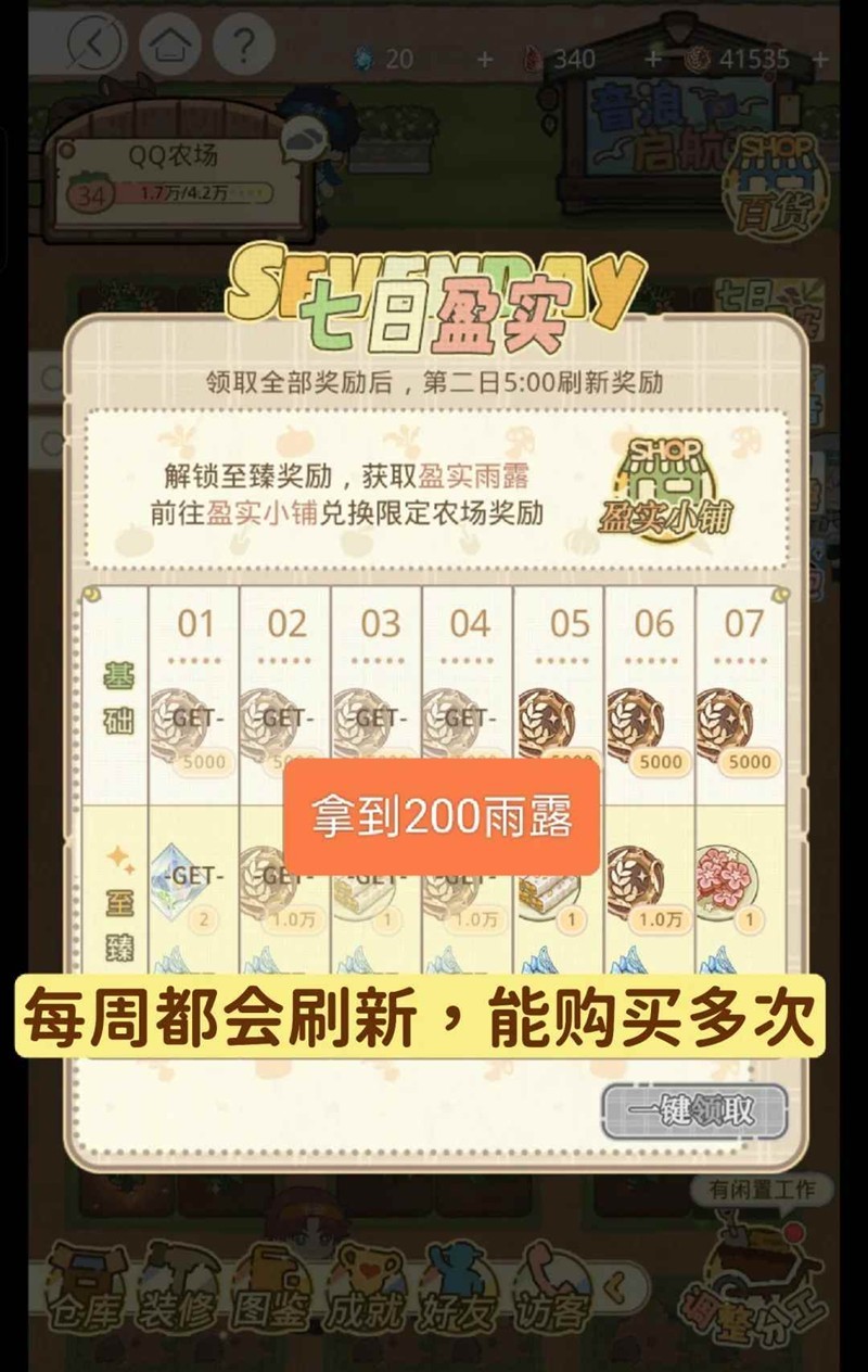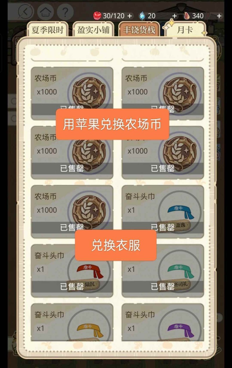 ③百货的农具优先兑换音浪启航节的(120雨露/个,共五个,15成就点)