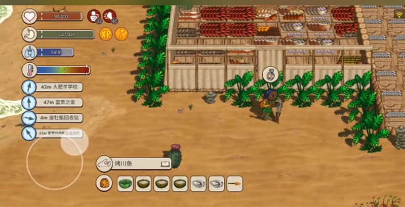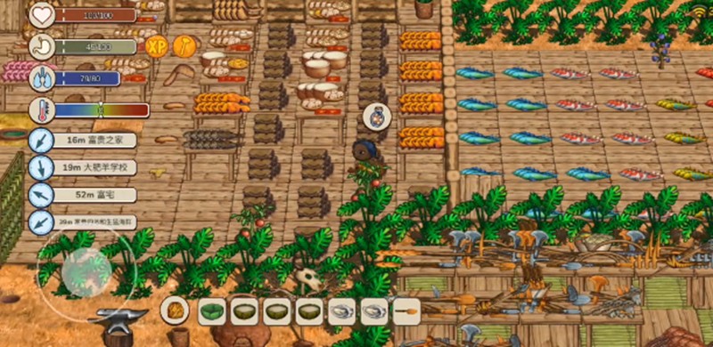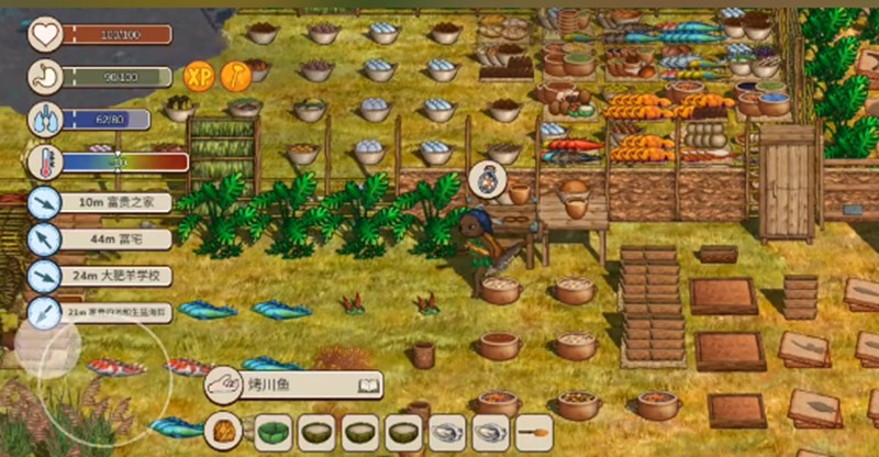 在村落人生中,玩家需要时刻关注饱食度。最简单的方法是采摘野外的番茄或蓝莓,这些天然果实能快速补充能量。但想要获得更高效的食物补给,就必须学会加工食材。新手入门可以从烤番薯开始,先用木棍采集番薯藤蔓,再用刀具将番薯切片。关键道具是一块扁石,将其投入火堆烧红后,就能用来烤制番薯片了。