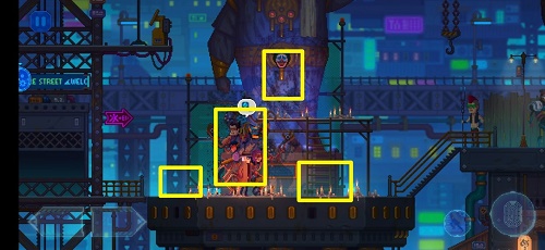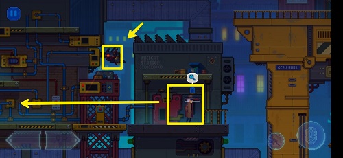 无人机会发射激光呲死你,注意看方框中,无人机刚回头的时候,我们有充足的时间冲刺过去