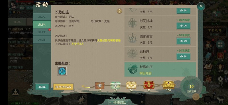 对于尚未达到60级的玩家,建议先在野外挂机获取基础装备。当等级达到要求后,可以寻找固定队伍挑战长歌山庄副本。与月卡玩家组队是提升装备获取效率的有效方法,既能获得非绑定装备,又能提高掉落几率。
