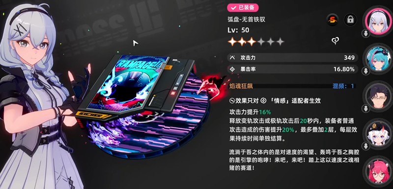 无首铁驭是情感系速攻流的首选武器,特别适合夜莺、赤霄这类速攻手。基础提供16%攻击力加成,核心特效"轨焰共鸣"能在使用特定技能后提升普攻伤害,最高可达40%增幅。这套武器在Boss战中表现尤为突出,通过技能连招能在短时间内打出爆炸伤害。
