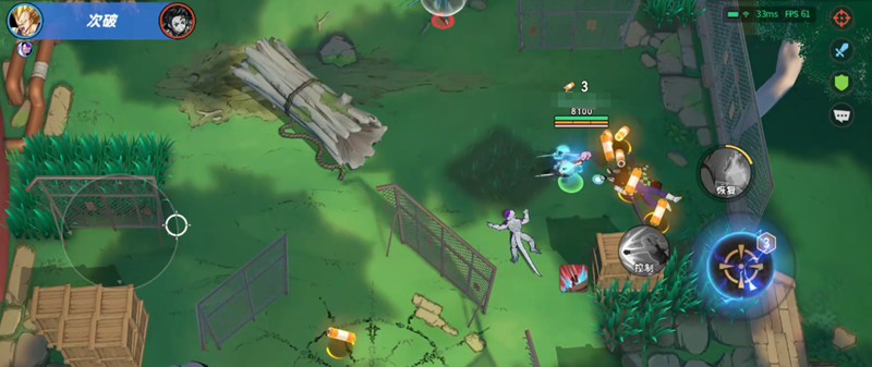 游戏采用经典的双摇杆操作模式,左侧控制移动,右侧负责攻击和释放技能。需要注意的是普攻键不能连续点击,每次攻击后需要等待充能才能继续输出。3v3积分赛是最基础的竞技模式,通过击杀对手获取积分,先达到10分的一方获胜。想要快速取胜,建议将6个角色提升至6级以上,其中4个主力角色最好升到满级9级,解锁双潜能和天赋系统能显著提升战力。