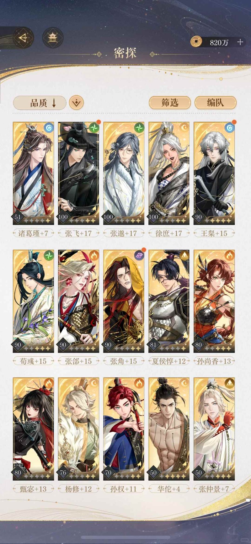 密探练度最低33级,最高90级,核爆队是我的神