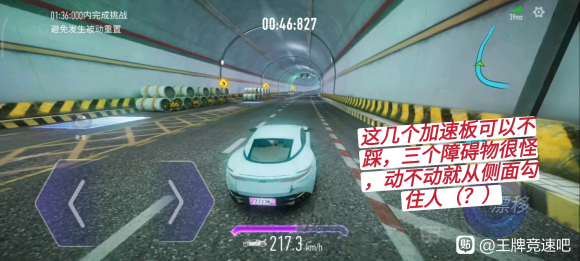 这几个加速板可以不踩,三个障碍物很怪动不动就从侧面勾住人(?)