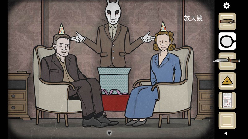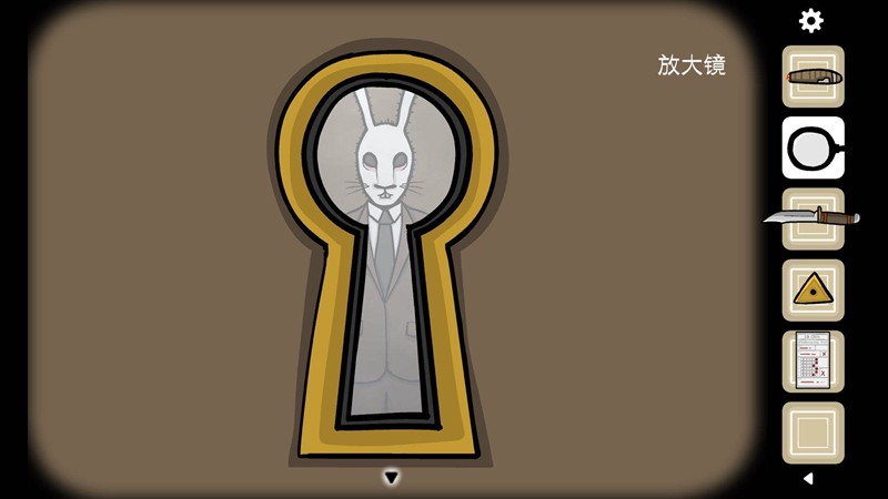 在游戏开始时,兔子先生会提示"就在门前",这时需要通过门口的钥匙孔观察,而不是直接开门。这个设计巧妙地利用了视角转换的解谜思路。