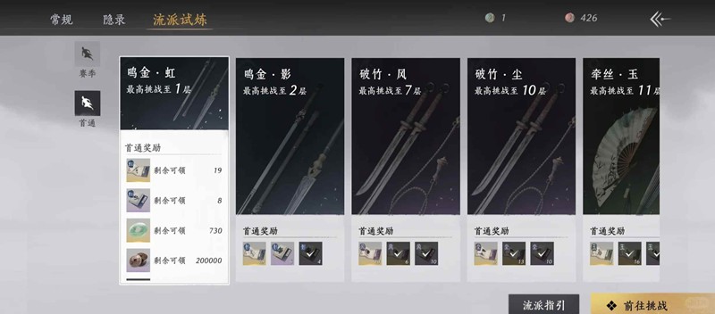 流派试炼 每赛季打满60星可得540长鸣玉 不同流派还有首通奖励 每流派最多可获得730长鸣玉