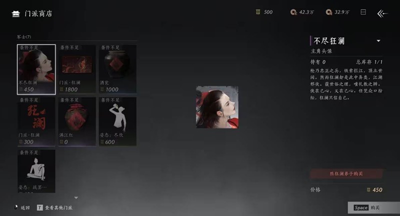 同时门派商城全面上新,主角头像「不尽狂澜」、专属名片「门派·狂澜」、表情动作「踏旗」、表情动作「尽饮」、置景「酒瓮」、题跋「门派·狂澜」等特色商品已上架,支持使用「江湖声望」兑换。温馨提示,其他「门派商店」均有新商品上架哦。