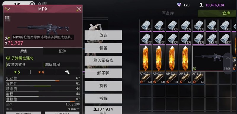 在改装方面,MPX拥有极高的改装自由度。在萤火突击中,这把武器可以加装多种配件,包括红点瞄准镜、垂直握把、消音器等。通过合理的配件组合,玩家可以打造出适合不同战斗场景的个性化武器配置,大大提升了战术灵活性。