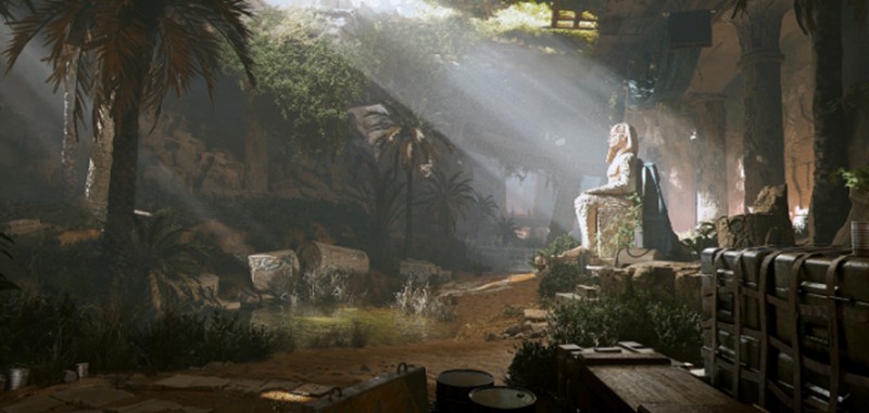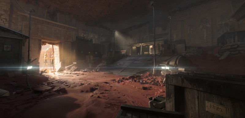金字塔地图位于一片广袤的沙漠绿洲之中,四周环绕着尼罗河支流和古老的断壁残垣。进入金字塔内部后,玩家会发现这里被改造成了现代化的军事基地,实验室和训练场等设施一应俱全。这种古今交融的设计为萤火突击的战场增添了独特的氛围。