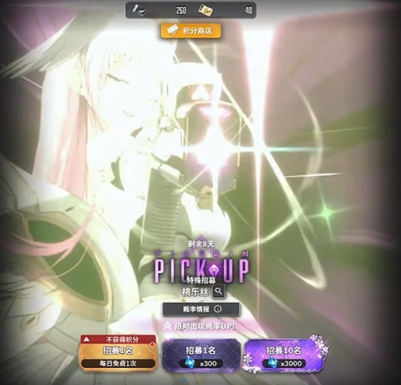 新人教学指南十连卡池是新手福利,使用10张普通招募券必定获得一个SSR角色,但仅包含开服基础角色。付费十连卡池需要使用付费钻石抽取,同样包含开服角色且有机会获得稀有的朝圣者角色,不过朝圣者的获取概率较低。