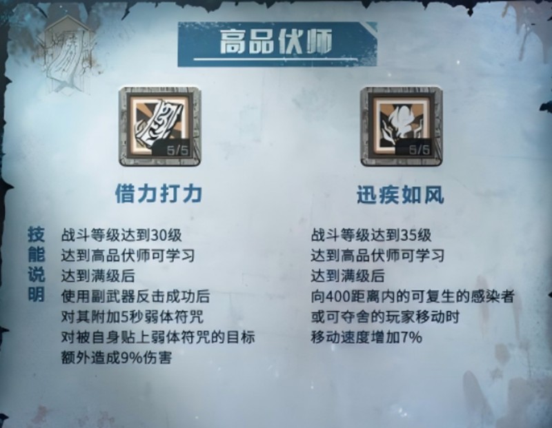 高品伏师阶段,借力打力在反击时附加弱体符咒,增加目标受到的伤害。迅疾如风则提升了7%的移动速度,让伏师在战场上的机动性大幅增强。